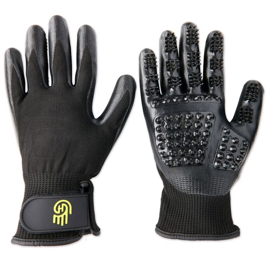 In addition to our lunchtime or after barn walks together, Goose also loves having his ball thrown to him, especially when it’s snowy out. He’ll dive under the snow to find the ball, bouncing out and racing back to me. I’ve found the HandsOn® Gloves for Grooming to be perfect for helping to get the little balls of snow off of Goose’s paws, belly, and back of his legs afterwards. I love that it gently addresses that, and he loves the full body scratches.