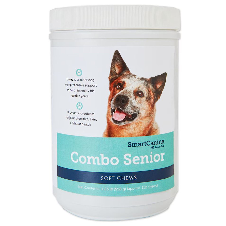 First, I will address his supplement program. Goose just turned 8 and doesn’t act like a senior at all; cattle dogs typically stay active into their late teens, so I focus mostly on proactive joint support and overall wellness for him. SmartCanine™ Combo Ultra Soft Chews has been great for him. He loves the tasty, chicken flavor of them, and I love knowing that he’s getting great joint, soft tissue, skin and coat, as well as digestive support. An added bonus – these chews are just soft enough to mask his daily allergy pill into as well.