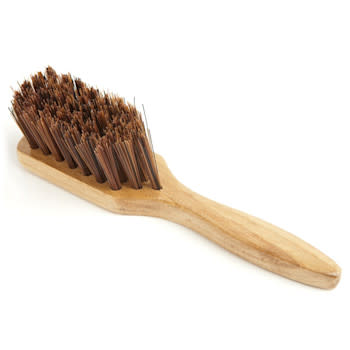 After breaking up that caked on mud and dirt, it’s time to brush it away. I swap to using the Haas Mustang Stiff Brush to get those clingy mud bits off effectively. I love this brush because it’s not too big and has a strap to comfortably hold the brush with. Plus, the bristles are top notch for getting rid of that tough mud! This brush has synthetic bristles with a fine brass wire inside that makes it extremely effective at removing dirt and mud. The brush is also completely washable, so you can rely on it time and time again to be a mud busting buddy!