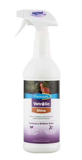 After I’ve finished currying him down, I always reach for my bottle of Vetrolin Shine. This helps me clean up any remaining dirt and adds some gloss and shine to his coat (which I especially appreciate when we haven't had the weather for a bath just yet!). I love that it has PABA sunscreen in it, too, so Nemo’s black coat has extra support to keep from sun bleaching. And, once I've finished going over his body, this spray helps me to coat and detangle his double mane, and long, thick Morgan tail, without risking hair breakage due to any tangles. I won’t touch his mane or tail without using this first! As an added benefit, it makes him smell great as well.