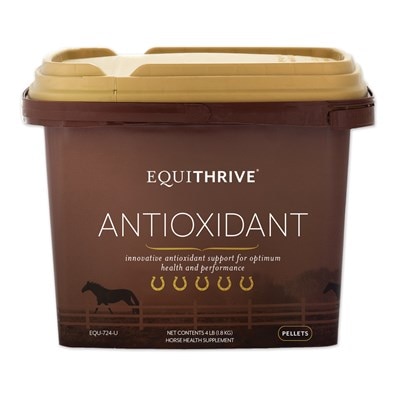 Equithrive® Antioxidant Pellets for horses are designed to address exercise-induced oxidative stress - a key physiologic challenge in performance horses that can contribute to muscle fatigue, delayed recovery, and reduced training consistency. This advanced formula delivers a targeted blend of antioxidants that work across multiple biochemical pathways to help neutralize reactive species such as superoxide, hydroxyl, and nitric oxide. By supporting cellular integrity at the foundation level, Equithrive Antioxidant Pellets help horses recover efficiently and perform at their best day after day. Trusted by veterinarians and trainers, this antioxidant supplement formula provides horses with precise nutritional support where performance begins - at the cellular level.