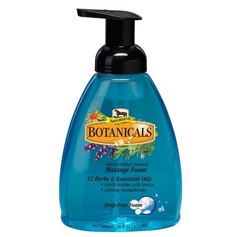 "Reward you and your horse with relaxing aromatherapy while gently soothing sore muscles and tendons. Absorbine Botanicals Foam quickly cools, soothes, and refreshes with 12 herbs and essential oils, including Aloe Vera and Arnica."