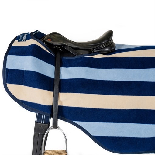 Newmarket Witney stripe pattern and timeless heritage leather detailing bring eye-catching style to the quarter sheet. Secures at front of saddle with velcro front closure and behind with tail string.