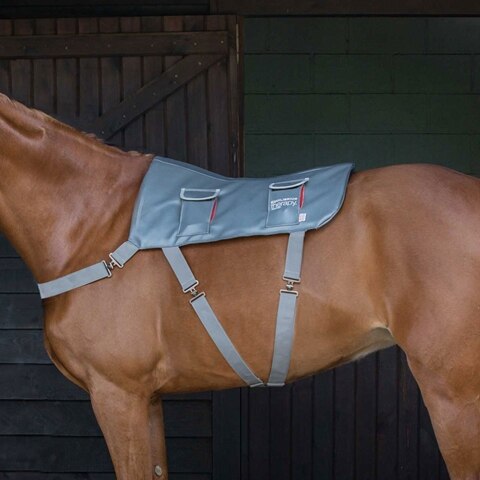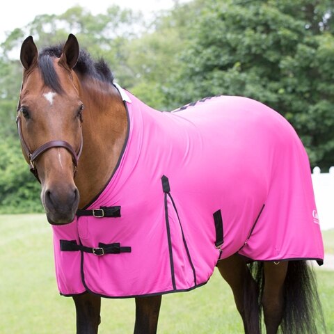 "Equine Cooling Blankets are great for cooling your athlete after exercise, performance, hauling, or just a hot summer's day. The process is simply the same, wet it, wring it and shake it. Both the belly and leg straps are removable ...