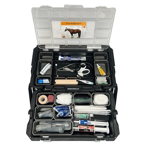 RX Equine has two all-encompassing first aid kits that are great additions to any barn or trailer so you can be prepared for any equine emergency. Both kits come in an articulated plastic first aid box that is durable, easy to spot, extremely light weight, and can be easily carried by the handle.