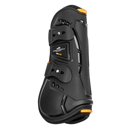 The Schockemoehle Air Flow Champion Tendon Boots are anatomically shaped, functional tendon boots. The EVA foam reinforcement protects the fetlock from shocks and impacts. These boots are breathable and permeable to air due to the ventilation holes on three levels and the mesh lining. The Bamboo lining absorbs the horse's sweat extremely well and has an anti-allergic and anti-bacterial effect, while being very durable and dimensionally stable. Features a double pin closer with elastic for a custom fit.
