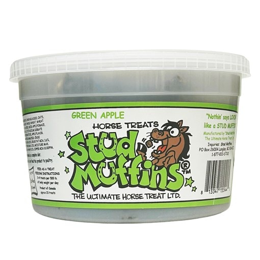 Stud Muffins® Green Apple Horse treats are a delicious , all-natural snack that horses and ponies will love!  Made with whole grain flour, oats, natural fruits and flavors, these soft and tasty horse treats are perfect for giving as everyday treats or especially after training sessions.