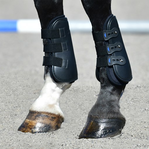 Smart front leg protection with the Weatherbeeta Tough-Tec Pro Open Front Boots ensures you will stand out at competitions. Crafted from PU leather, these horse boots are built to last through all your equestrian adventures. These boots are easy to clean, ensuring they look as good as new with minimal effort. Elasticated straps provide a snug and secure fit, preventing slippage. Your horse will move freely and comfortably, allowing for optimal performance. The perforated neoprene lining ensures ultimate breathability, keeping your horse's legs cool and dry. Plus, the lining is easily removable for quick cleaning, maintaining hygiene and comfort.